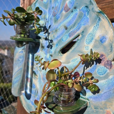 je façonne des pièces en grès, souvent émaillées de nuances de bleu, et surtout inspirées par cette merveilleuse nature qui nous entoure.
